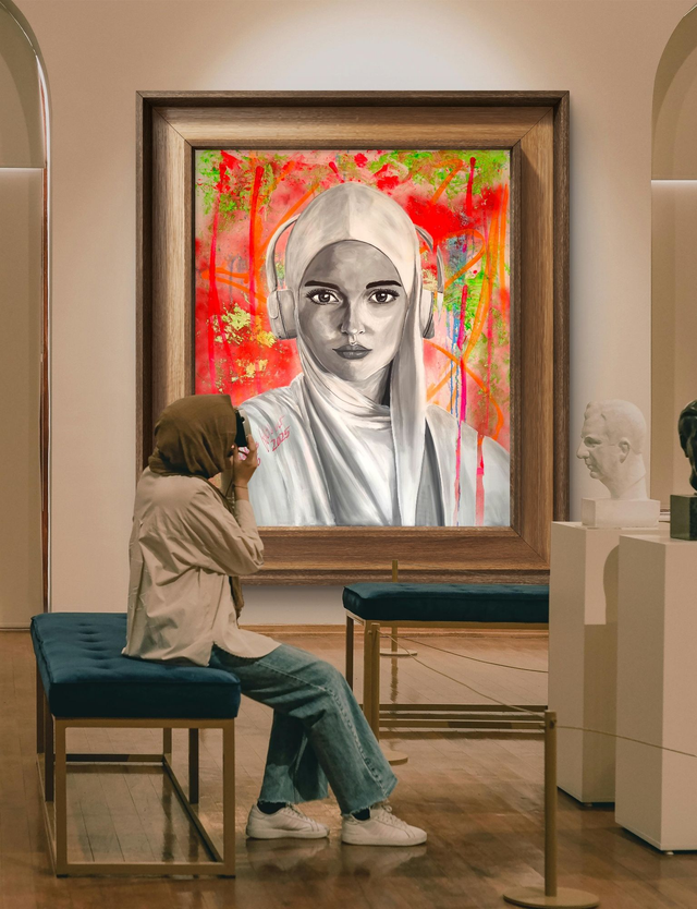 „Generation“ ist eine großformatige figurative Arbeit, die Präsenz und innere Spannung verbindet. Die frontal dargestellte Figur wirkt ruhig und geschlossen, während der expressive, neonfarbene Bildgrund einen deutlichen Kontrast setzt. Figur und Umfeld stehen in einem Spannungsverhältnis aus Kontrolle und Überlagerung.