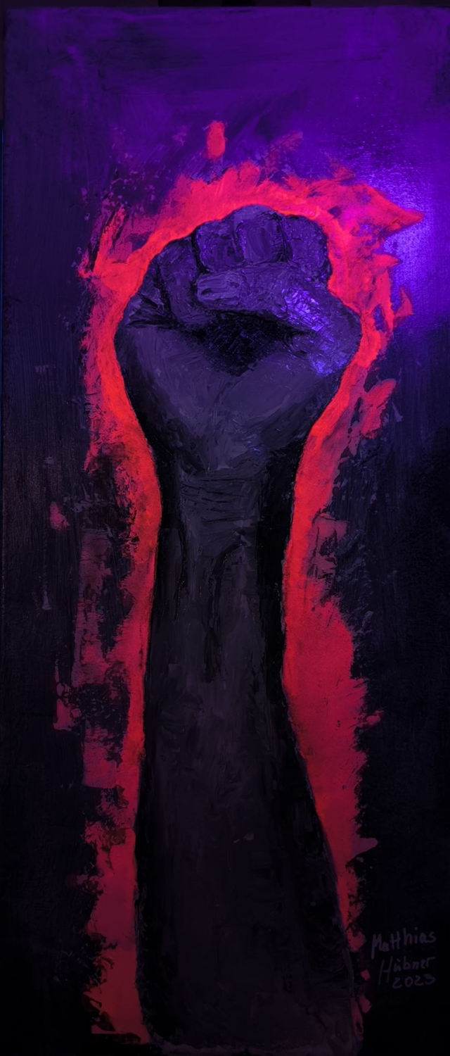 1. Emotional und Ausdrucksstark: Das Bild zeigt eine geballte Faust, ein universelles Symbol für Protest, Solidarität und den Kampf für Gerechtigkeit.