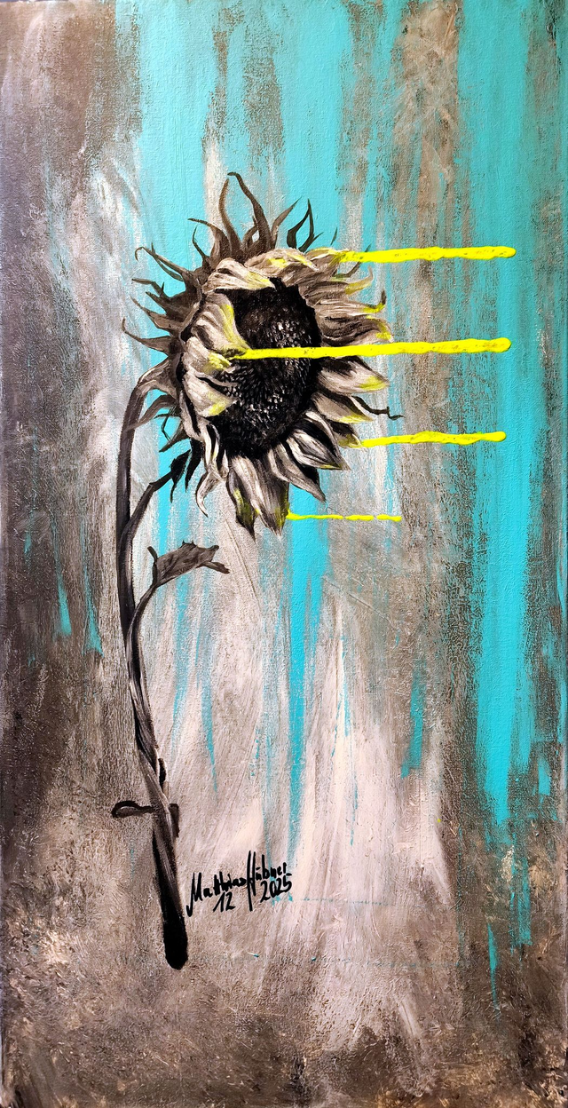 NATUR ist eine abgeschlossene Werkgruppe von Matthias Hübner. Sie nutzt bekannte florale Motive nicht als Naturdarstellung, sondern als Projektionsflächen für psychologische Zustände. Die drei Arbeiten sind formal reduziert und klar gesetzt. Farbe – insbesondere Neon – erscheint nicht dekorativ, sondern als künstlicher Eingriff in einen überwiegend zurückgenommenen Bildraum. Das zentrale Werk Rose bildet den visuellen und strukturellen Anker der Gruppe. Sonnenblume erweitert diesen Kern als Spannungsfeld, Roter Mohn löst ihn auf. Die Werkgruppe verzichtet bewusst auf Deutung und Symbolik. Bedeutung entsteht nicht durch Erklärung, sondern durch Betrachtung. NATUR kann als geschlossene Trilogie oder in Einzelwerken erworben werden.